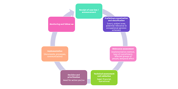 Many companies lack transparency and a clear classification of case law. Reports are noticed, but without a structured assessment, it remains unclear whether and to what extent their own occupational pension schemes are affected. As a result, the scope and speed of the effects are regularly underestimated – especially in the case of retroactive effects or when guidelines effectively set new standards in practice. Specialist departments hesitate because responsibilities, review steps and escalation paths are not clearly defined. The result is delayed reactions that are only triggered by lawsuits, audits or deadline pressure – with predictable consequences: too late, too expensive, too risky.